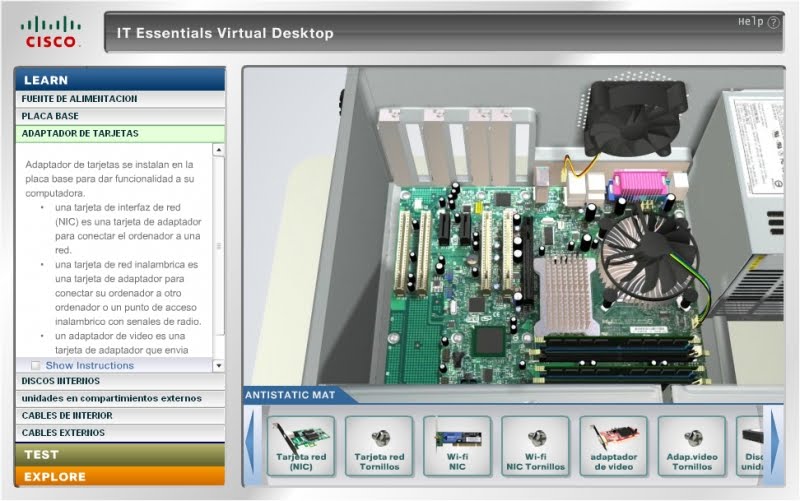 Acá tenemos un excelente simulador de armado y desarmado de PC creado por Cisco. Sigue el mismo formato que los cursos (por archivos SWF y mediante un navegador web).