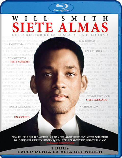 Siete almas es la historia de suspense de un hombre con un inquietante secreto que decide, para redimirse, cambiar drásticamente la vida de siete completos desconocidos. Una vez que el plan está en marcha, nada puede alterarlo. O eso es lo que él piensa. Pero lo que nunca esperó era enamorarse de uno de esos extraños, y que sea ella quien comience a cambiarlo a él. La película plantea cuestiones acerca de la vida y la muerte, la culpa y el perdón, los extraños y la amistad, el amor y la redención, y busca la conexión entre esos lazos que unen el destino de la gente de una manera sorprendente. Duración : 2h 3min. Tasa de bits : 3 953Kbps Ancho : 1 920pixeles Alto : 1 080pixeles Relación de aspecto : 16:9 Velocidad de cuadro : 23,976fps